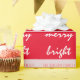 Bright Merry Script Red Christmas Family Name Wrapping Paper. Add your name and make a unique gift wrapping paper.