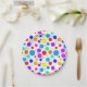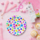 A fun design suitable birthdays or any occasion and for any person of any age. This is an all over printed image of big and small multi coloured spots. Different coloured dots. With blues, greens, yellows, reds, turquoise, pinks, purples and orange colours on a white background. There is no text on this product, but can be added if desired. If you would like help to customise this product please contact me through my store and i will be happy to help you.