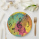 Unique and eye-catching, this cool and retro music design features musical notes in a circular pattern with a large treble clef in the centre on a bright paint splat and psychedelic tunnel background.