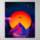 Bright Neon Mountains Sunrise Aeroplane Poster