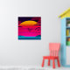 I hope you enjoy these bright neon colours of orange, red, hot pink, purple, and navy blue sun at dusk or dawn with teal grid lines with pink glowing palm trees and a cute little butterfly.