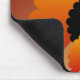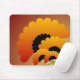 Mousepad with bold, eye-catching and vibrant stylised floral design in bright orange and black.