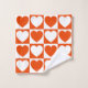 A bath towel set built with a bright orange and white chequered pattern with hearts. Customise the white background colour among other options.
