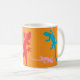 Bright Orange Coffee Cup with Colorful Lizards