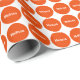 A wrapping paper designed with a bright orange dot pattern on a white background and name. Customise the wrapping paper with your special name or text among other options.