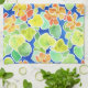 Bright Orange, Red, Yellow Nasturtiums on Blue Tea Towel