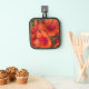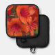 Safely handle baking trays, cookie sheets and muffin tins from the oven with this pot holder with black trim that features a colourful photo image of bright, orange Rhododendron blooms. A lovely, floral design! Select your pot holder backing style.