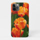 Cute Bright orange tulips in the park on a sunny day in the garden. The photo was taken in June 2022. The poster is suitable for interior design.
