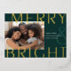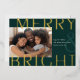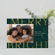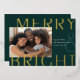 A modern and colourful holiday card featuring a horizontal or landscape-orientated photo with "Merry & Bright" overlaid in oversized gold foil lettering. Personalise with your custom holiday greeting, family name, and the year. A chic and modern minimalist choice for your Christmas greetings.