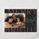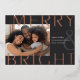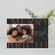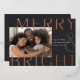 A modern and colourful holiday card featuring a horizontal or landscape-orientated photo with "Merry & Bright" overlaid in oversized rose gold foil lettering. Personalise with your custom holiday greeting, family name, and the year. A chic and modern minimalist choice for your Christmas 2022 cards.