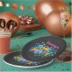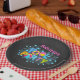 Add a personal touch to your party with personalised paper plates. It has "Pool" in bright colours with a tube and a beach ball as the letter O. There's water splash marks all around it. Check out our many other matching products in this collection.