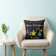 This is a bright, colourful throw pillow with ornaments, which are customisable, on a black background. You can put your family's names on each ornament, or make a great present for a grandparent with their grandchildren's names. Great addition to your Christmas decor.