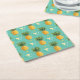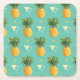 Bright Pineapples On Geometric Pattern Square Paper Coaster