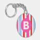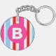 Bright Pink and Blue Candy Stripes Monogram Key Ring