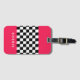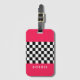 Bright pink and chequerboard luggage tag