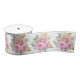 This fun and whimsical ribbon features bright pink and gold elegant flowers.