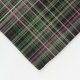 This fleece blanket features a bright pink, bright green and black plaid pattern.