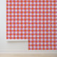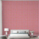 A playfully bright pink and orange red chequered plaid pattern wallpaper that adds a wonderfully bold pop to any room. Each individual measures approximately 2". Original art and design by Annie Montgomery Design.