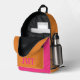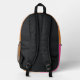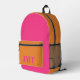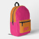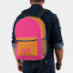 This colorblock backpack has a pocket with bright pink letters for the monogram on an orange background. All text can be edited or deleted.