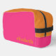 Orange letters for the correct name appear on a bright pink background. All text can be edited or deleted.