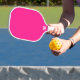 This modern pickleball paddle design features a bright pink background, with your initial in bold white text for a look that is simple and stylish, yet professional.