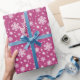 Bright Pink and Winter White Snowflake Pattern Wrapping Paper