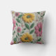 Bright Pink and Yellow Floral Embroidery Style Art Cushion