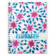 Bright Pink Blue Flowers Leaves Acrylic Monogram Notebook