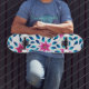 Bright Pink Blue Flowers Leaves Acrylic Paint Skateboard