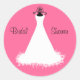 Trendy bright pink stickers, with lovely graphics of a white wedding gown, on a black hanger. Black custom text reads Bridal Shower and is ready to personalise to read anything you wish. Great as seals to your bridal shower invitation envelopes.