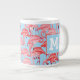 Bright Pink Flamingos On Blue | Add Your Initial Large Coffee Mug