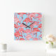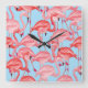 Bright Pink Flamingos On Blue Square Wall Clock