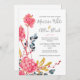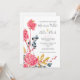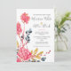Beautiful and bold floral pattern - bright pink flowers, mixed with navy blue and mustard yellow leaves. A gorgeous eyecatching design to show of your unique personality for your big day. Script text and serif font keep it clasic, with pops of colour for a fun and modern element.