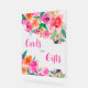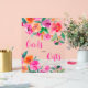 Bright hot pink floral script bridal shower cards and gifts table top transparent sign featuring pretty hand painted bold pink, orange red blooms flowers and greenery. Perfect for fall boho themed bridal shower garden party. With a modern script typography.