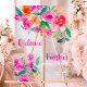 Bright hot pink floral script bridal shower welcome transparent sign featuring pretty hand painted bold pink, orange red blooms flowers and greenery. Perfect for fall boho themed bridal shower garden party. With a modern script typography.