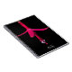 A personal sized, spiral bound notebook that features a cover photo image of a bright, pink Fuchsia flower against a contrasting, black background. A lovely, floral design! Use as a journal or to keep important notes.
