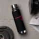 Bright Pink Fuchsia Flower on Black Water Bottle