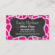 Bright Pink Giraffe Animal Print; Retro Chalkboard Business Card