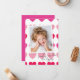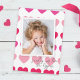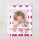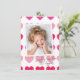 Bright Pink Hearts Photo Valentine's Day Card with modern heart pattern and photo overlay with script handwritten typography on the front. The back has a longer personal message from the sender/family. Click the edit button to customise this design with your photos and details.