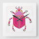 Bright pink horned beetle wall clock that is funky, cute, and oh, so artsy! Fully customisable to suit your needs and preferences, this jewelled coloured horned beetle is sure to get all the smiles, oohs and aahs from all onlookers. Whimisically designed, hand drawn, beautifully painted, one-of-a-kind art separates this white background wall clock from all the others. Order yours today!