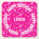 Bright pink I love tennis, Happy Birthday Square Paper Coaster