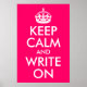 Keep Calm and Write On parody for writers on bright pink . You can change the wording, text size or the background colour.
