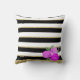 Bright Pink Roses on Black, White, Gold Cushion