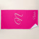 Bight pink ( #FF007F) solid colour monogrammed beach towel from the store of lumirala /personalise it now with your name and monogram .