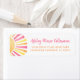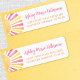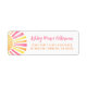 This bright and cheerful address label is the perfect finishing touch for mailing baby shower or "First Trip Around the Sun" birthday invitations. The design features a vibrant sun on the left side, with colourful rays in a gender-neutral mix of yellow, orange, red, teal, and blue, adding a playful and joyful touch.