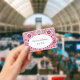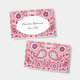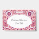 This name or identification badge has a bright paisley design done in shades of pink and white with tear drops and daisy type flowers. Customise your name and information in the white oval with the templates.