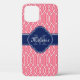 Bright Pink Wht Lattice Pattern Navy Monogram Case-Mate iPhone Case
