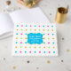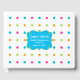 Fun special occasion guest book done in white with a colourful yellow, green, blue, and pink polka dot pattern. A blue decorative plaque text area has white custom text ready to personalise, for your special day. Great for Sweet 16 birthday parties, weddings, anniversary parties Bat Mitzvah and more.