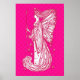 Vintage art butterfly fairy with a crown and a wand with a bright pink polka dot background as decorative wall art.