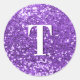 Bright Purple Chunky Glitter Monogrammed Classic Round Sticker